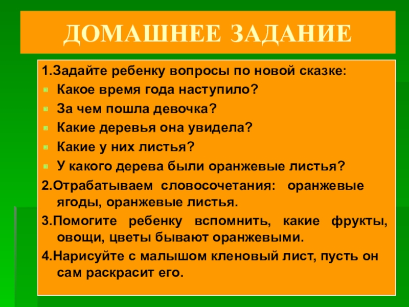 2.Отрабатываем словосочетания: оранжевые ягоды, оранжевые листья.