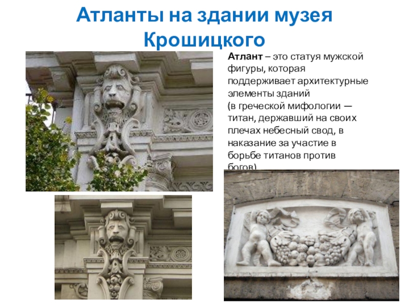 Слайд 4Атланты на здании музея Крошицкого