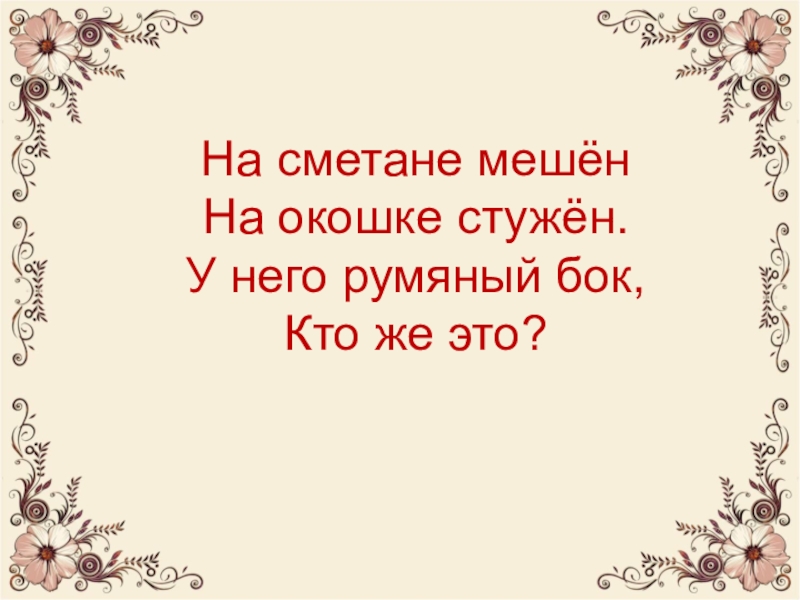 Слайд 2На сметане мешён На окошке стужён. У него румяный бок, Кто же это?