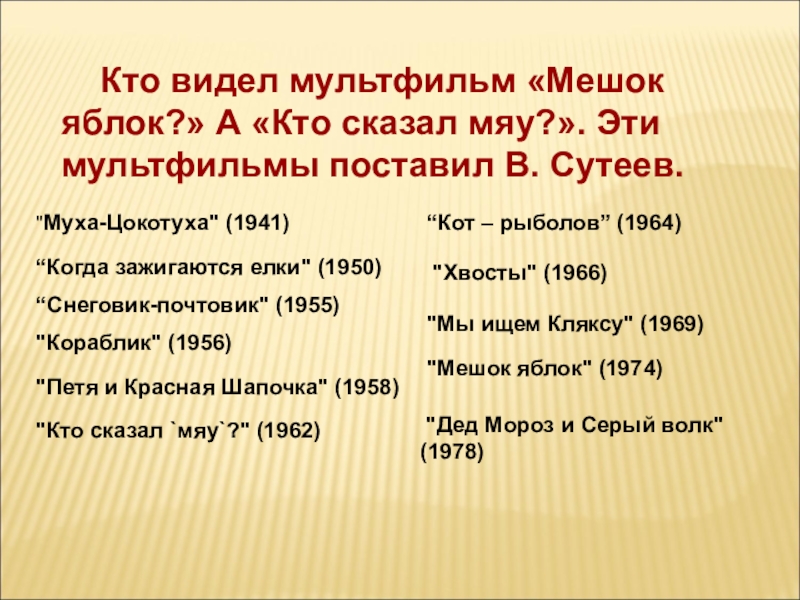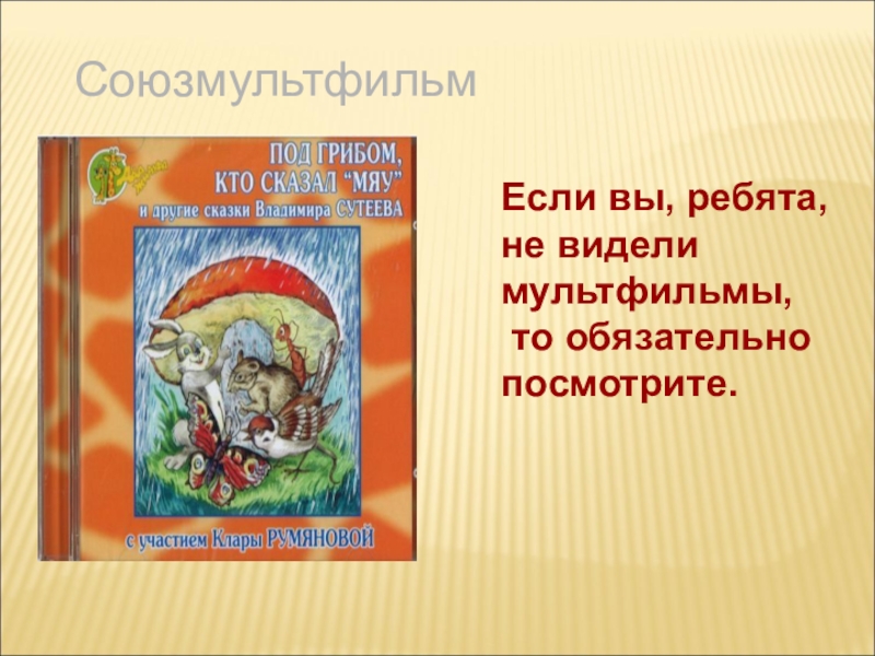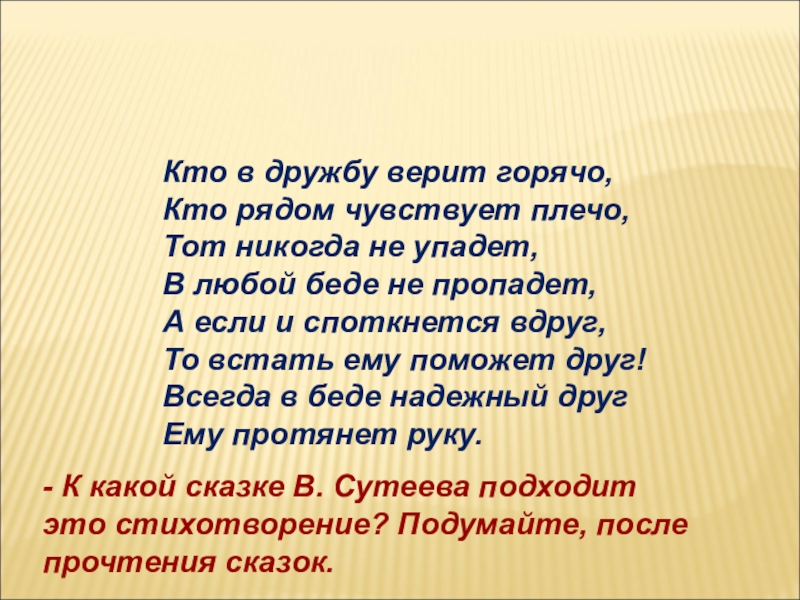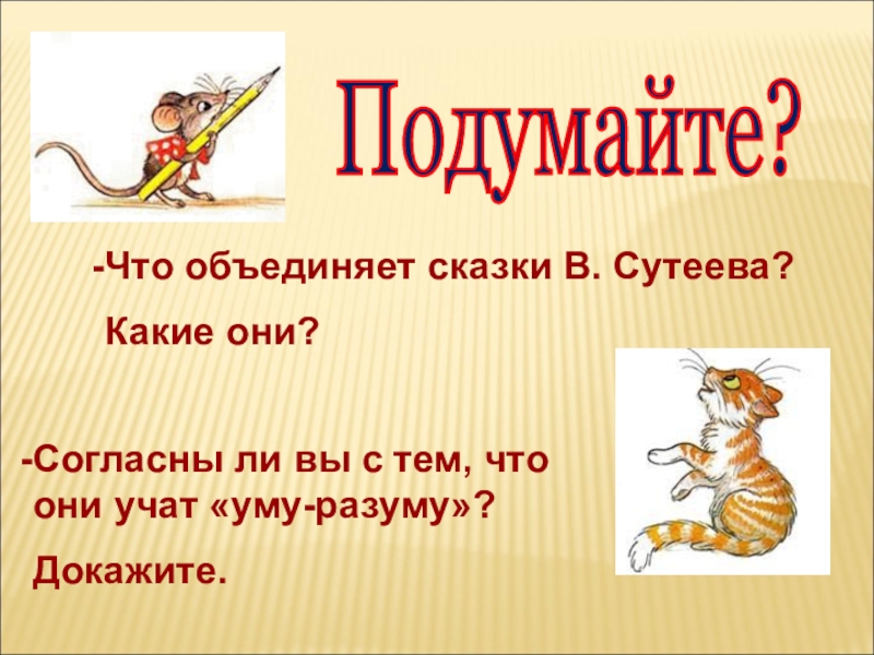 - К какой сказке В. Сутеева подходит это стихотворение? Подумайте, после прочтения сказок.