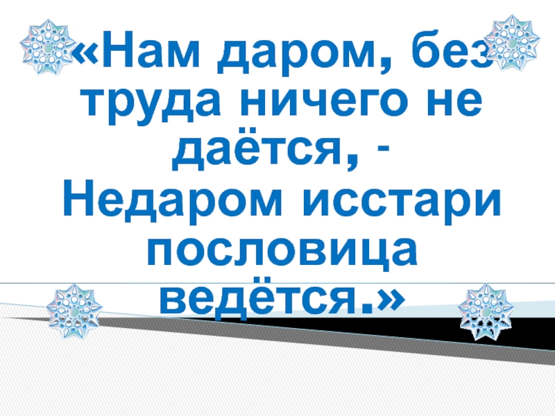 «Нам даром, без труда ничего не даётся, -Недаром исстари пословица ведётся.»