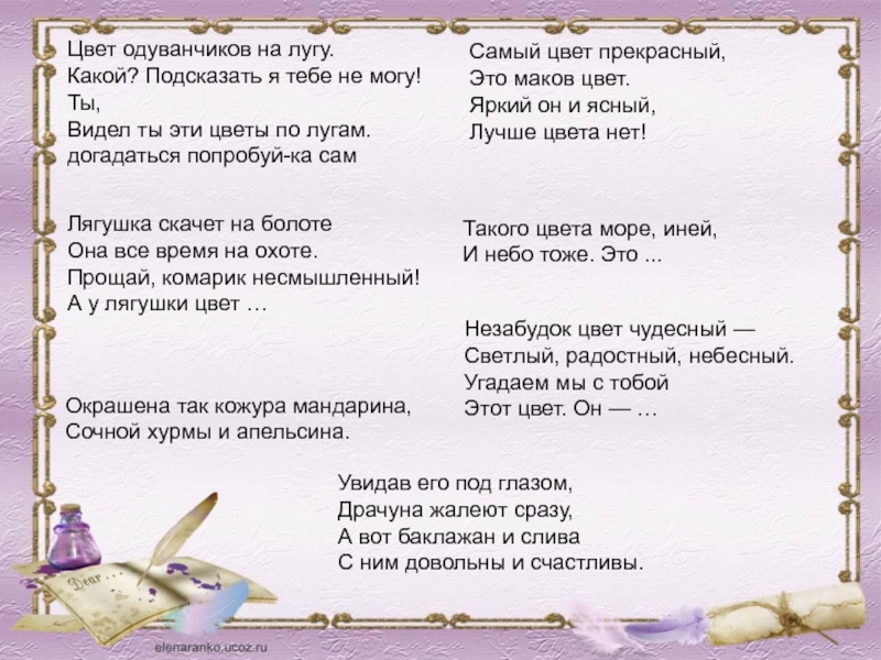 А у лягушки цвет …