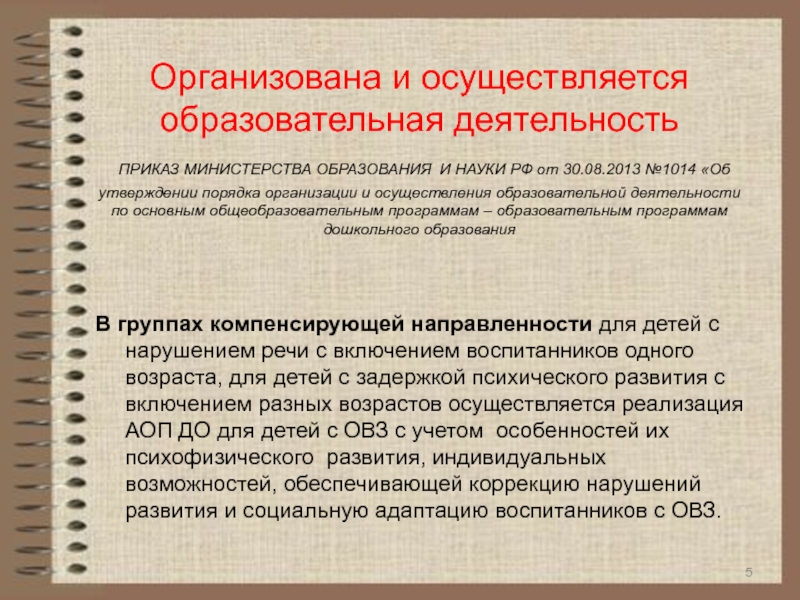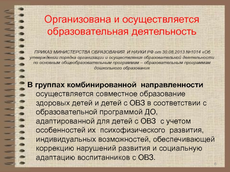 ПРИКАЗ МИНИСТЕРСТВА ОБРАЗОВАНИЯ И НАУКИ РФ от 30.08.2013 №1014 «Об утверждении порядка организации и осуществления образовательной деятельности по основным общеобразовательным программам – образовательным программам дошкольного образования