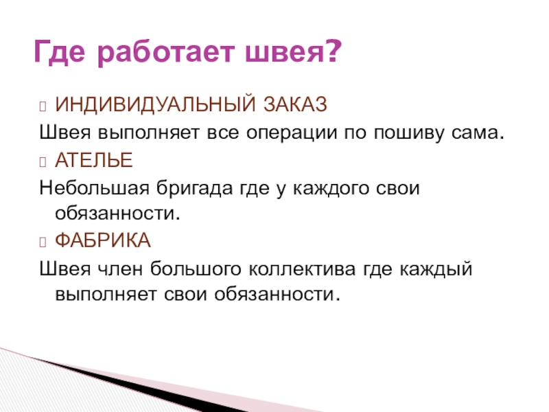 Где работает швея?