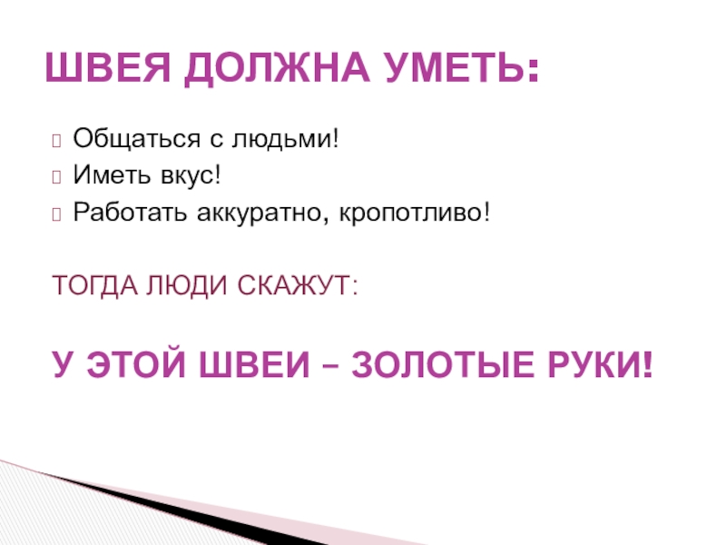 ШВЕЯ ДОЛЖНА УМЕТЬ: