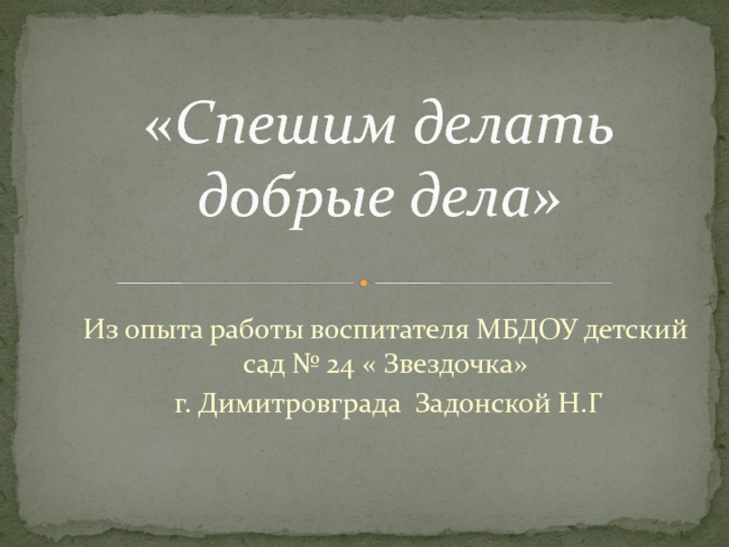 «Спешим делать добрые дела»