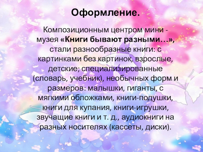 Это сайт презентаций, где можно хранить и обмениваться своими презентациями, докладами, проектами, шаблонами в формате PowerPoint с другими пользователями. Мы помогаем школьникам, студентам, учителям, преподавателям хранить и обмениваться учебными материалами.