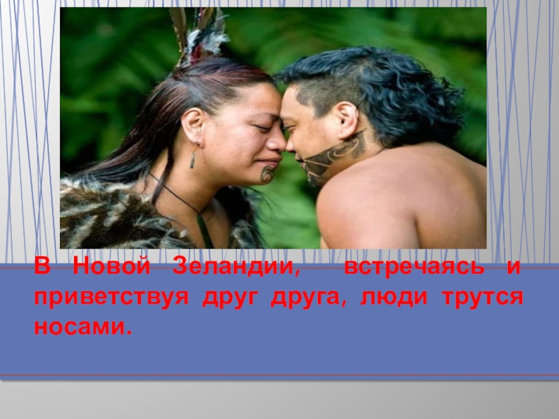 Слайд 7В Новой Зеландии, встречаясь и приветствуя друг друга, люди трутся носами.