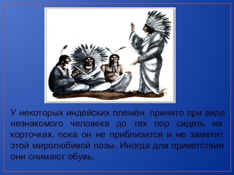 Слайд 4У некоторых индейских племён принято при виде незнакомого человека до тех