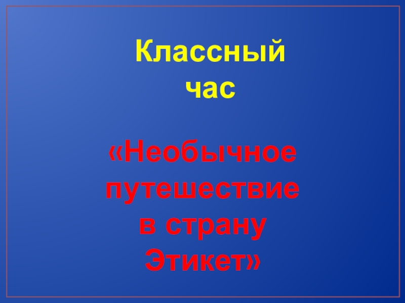 Классный час«Необычное путешествиев странуЭтикет»