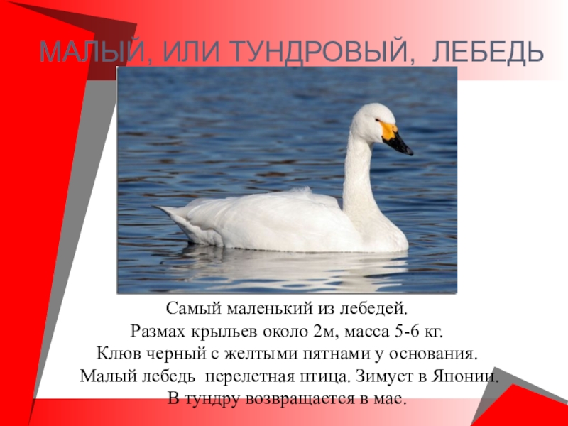 Слайд 9 МАЛЫЙ, ИЛИ ТУНДРОВЫЙ, ЛЕБЕДЬ
