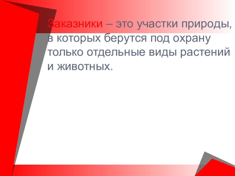 Слайд 21Заказники – это участки природы, в которых берутся под охрану только