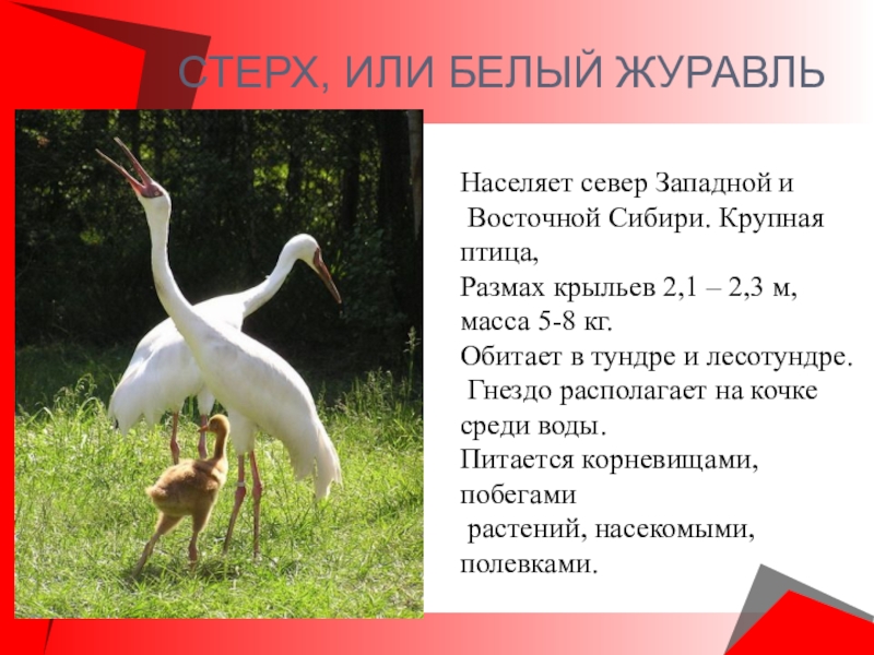 Слайд 11 СТЕРХ, ИЛИ БЕЛЫЙ ЖУРАВЛЬ