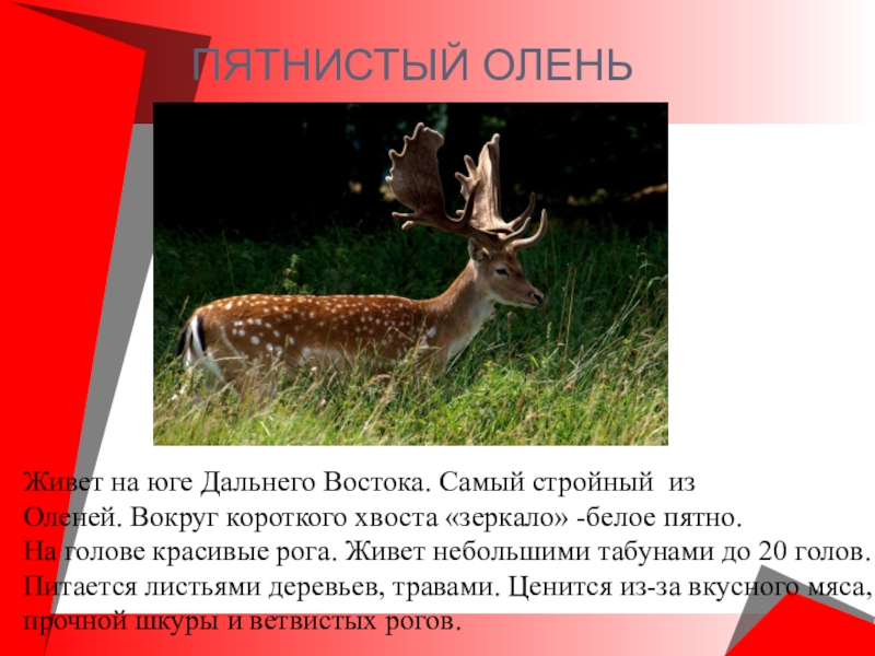 Слайд 15ПЯТНИСТЫЙ ОЛЕНЬ