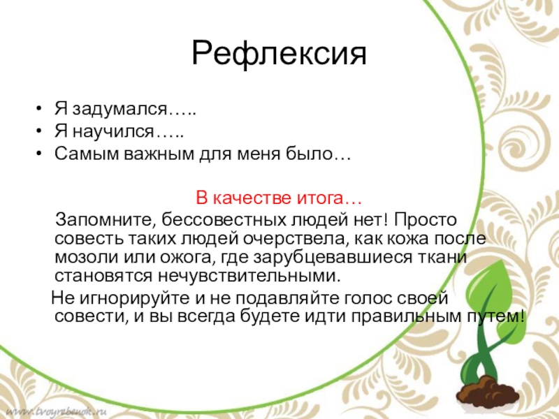 Не игнорируйте и не подавляйте голос своей совести, и вы всегда будете идти правильным путем!
