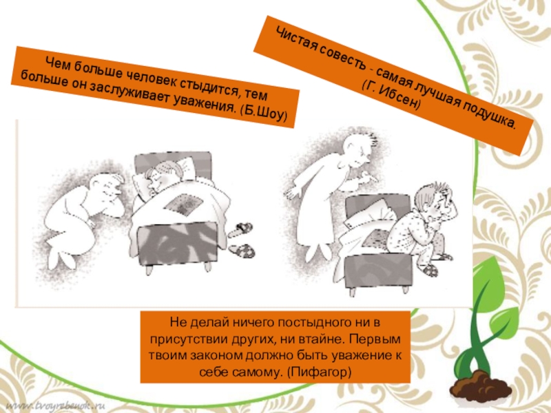 Слайд 9Чем больше человек стыдится, тем больше он заслуживает уважения. (Б.Шоу)
