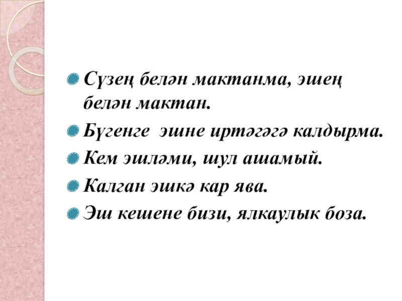 Слайд 12Сүзең белән мактанма, эшең белән мактан.