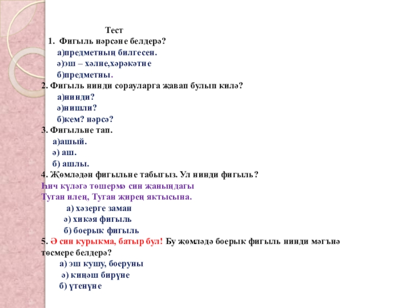 4. Җөмләдән фигыльне табыгыз. Ул нинди фигыль?