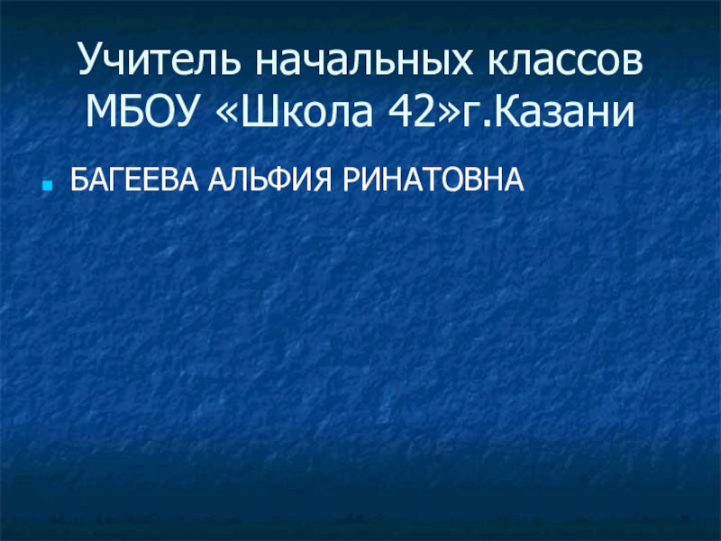 Учитель начальных классов МБОУ «Школа 42»г.КазаниБАГЕЕВА АЛЬФИЯ РИНАТОВНА