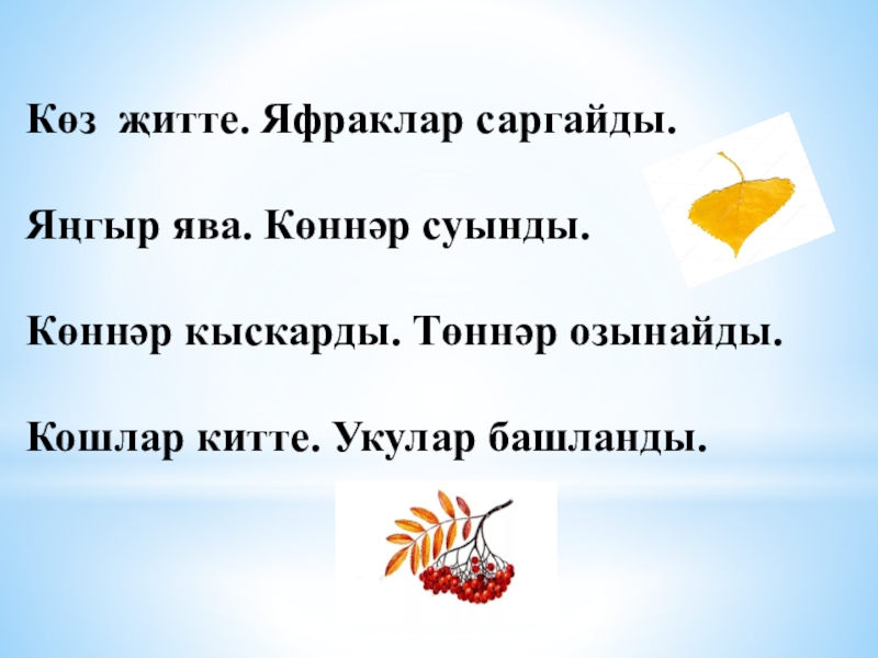 Слайд 7Көз җитте. Яфраклар саргайды.
