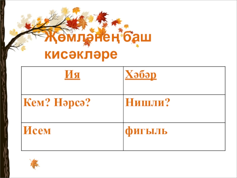 Презентация, доклад по татарскому языку Җөмләнең баш кисәкләре (3 класс)