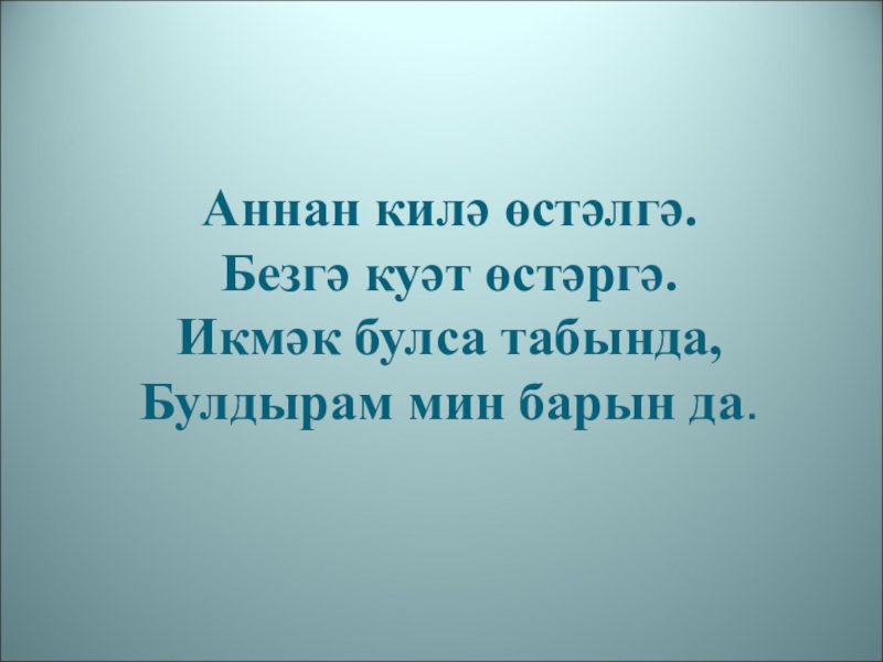 Слайд 4Аннан килә өстәлгә. Безгә куәт өстәргә. Икмәк булса табында, Булдырам мин барын да.