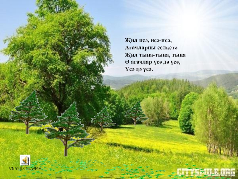 Слайд 4Җил исә, исә-исә, Агачларны селкетә Җил тына-тына, тына Ә агачлар үсә дә
