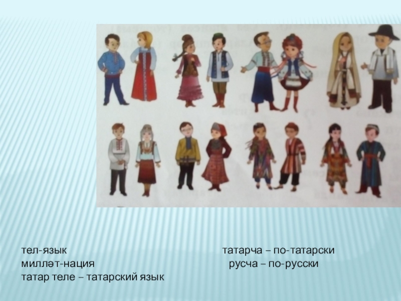 татарча – по-татарски милләт-нация русча – по-русски татар теле – татарский язык