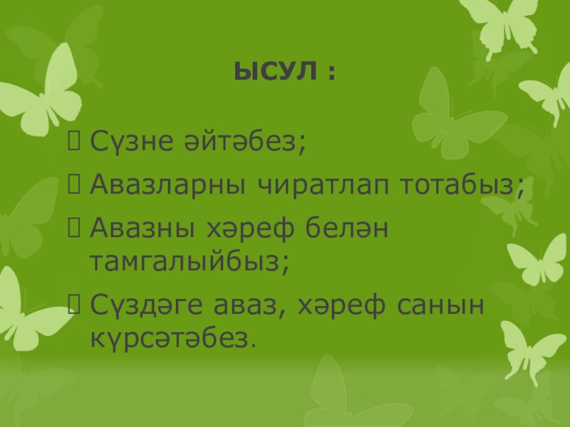 Презентация, доклад по татарскому языку на тему Сүздә хәреф- аваз санын билгеләү