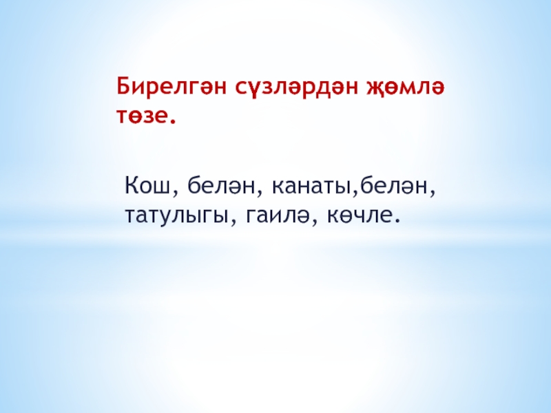 Слайд 3Бирелгән сүзләрдән җөмлә төзе.