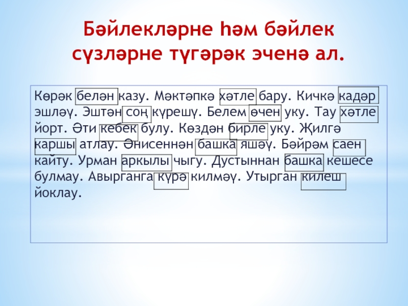Слайд 9Бәйлекләрне һәм бәйлек сүзләрне түгәрәк эченә ал.