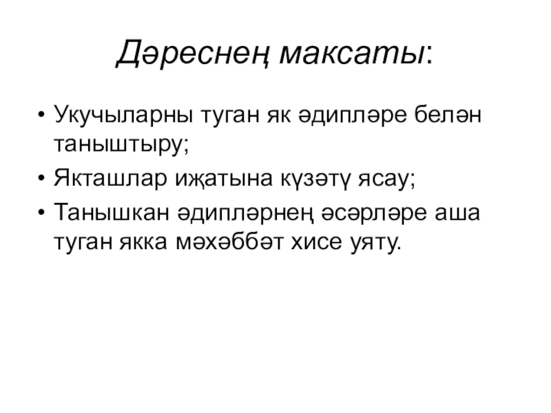Укучыларны туган як әдипләре белән таныштыру;