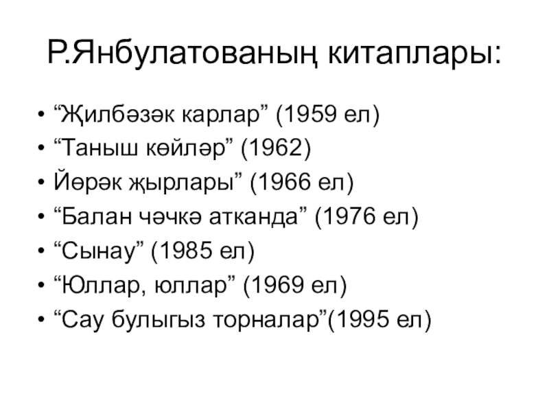 Слайд 19Р.Янбулатованың китаплары: