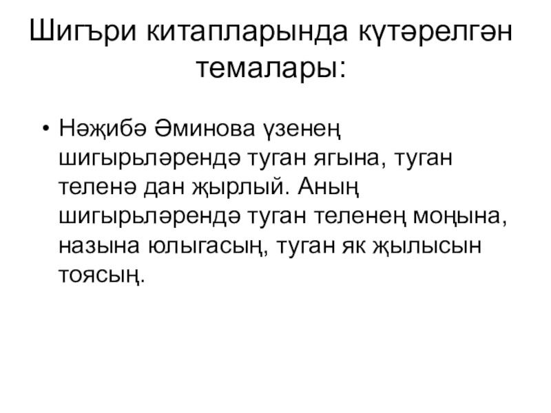 Слайд 12Шигъри китапларында күтәрелгән темалары: