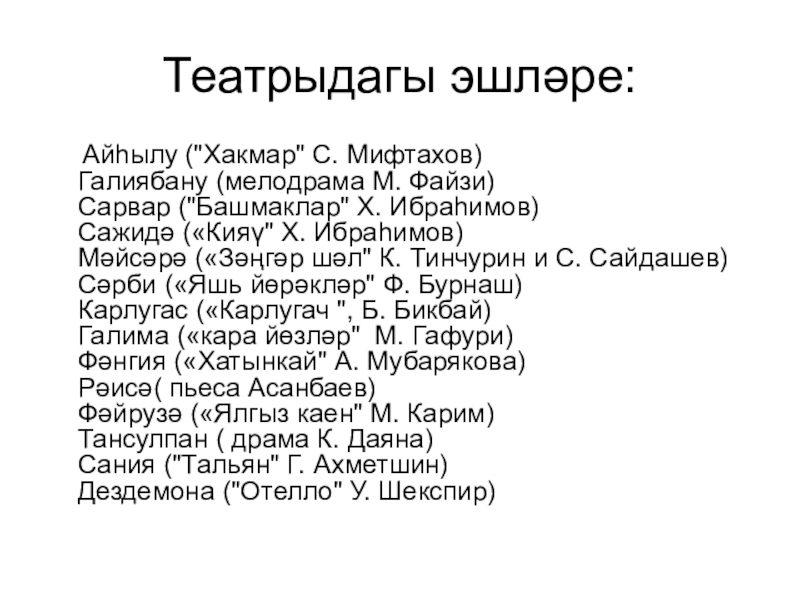 Слайд 20Театрыдагы эшләре: