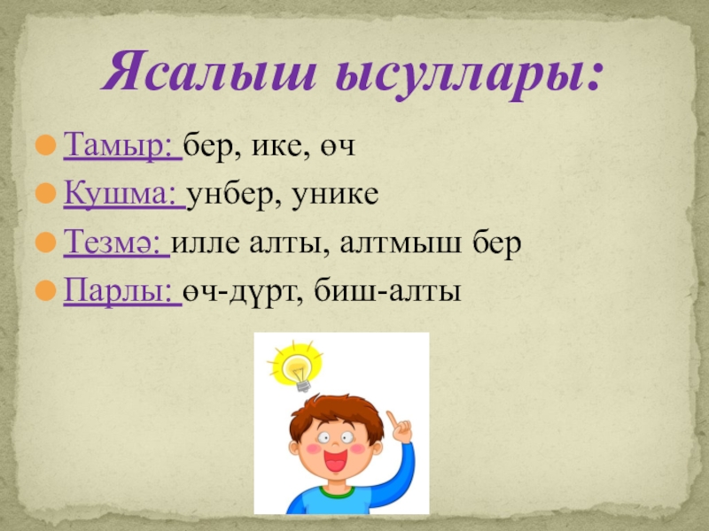 Ясалыш ысуллары: