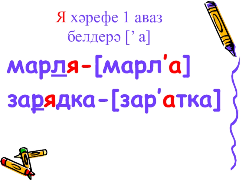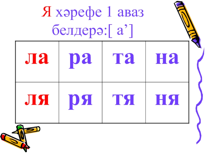 Слайд 7Я хәрефе 1 аваз белдерә [’ а]