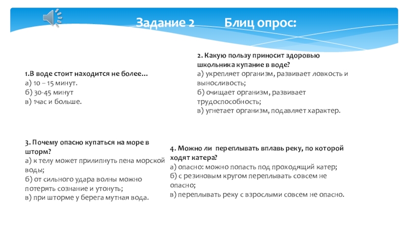 Задание 2 Блиц опрос: