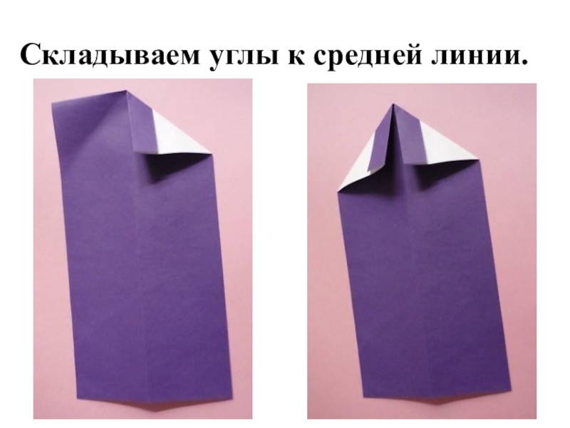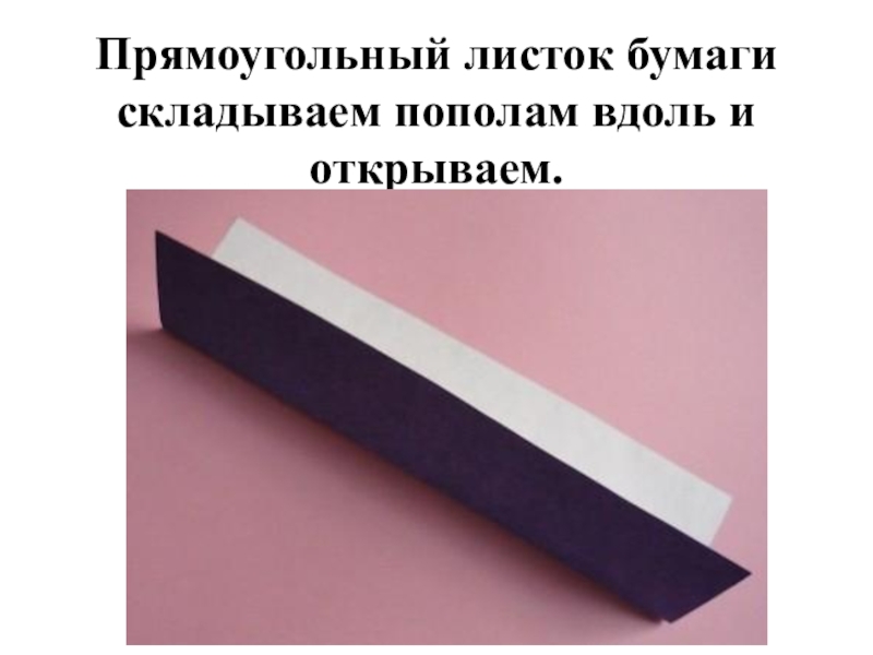 Слайд 2Прямоугольный листок бумаги складываем пополам вдоль и открываем.