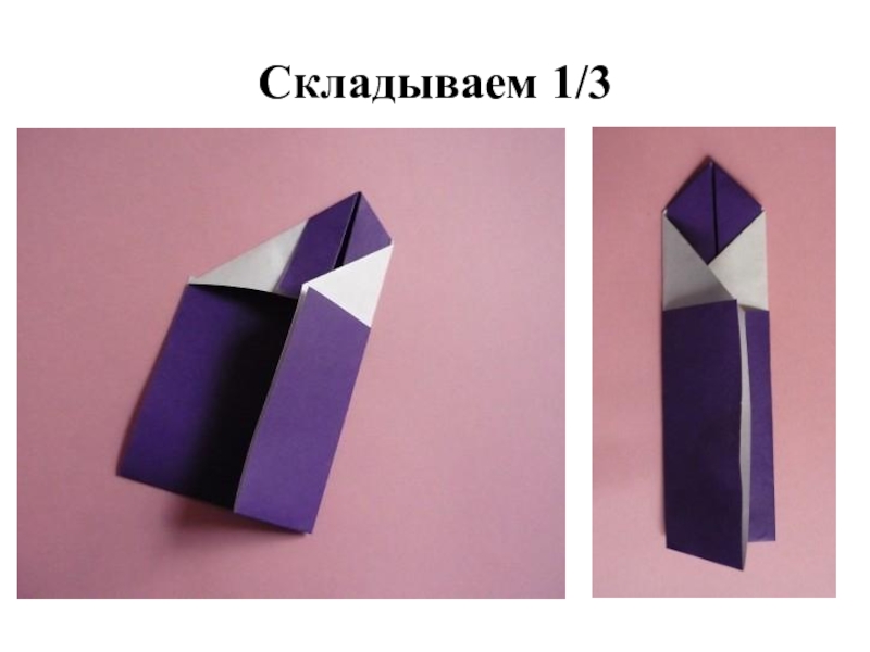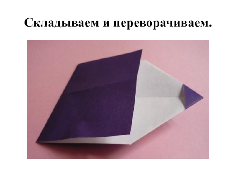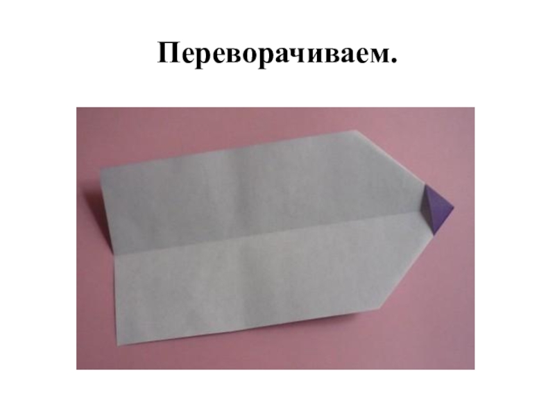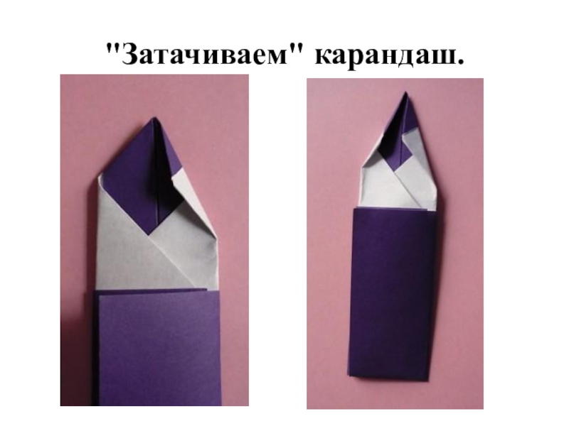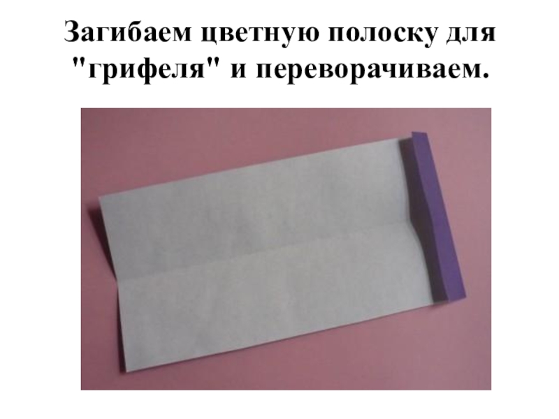 Слайд 3Загибаем цветную полоску для "грифеля" и переворачиваем.