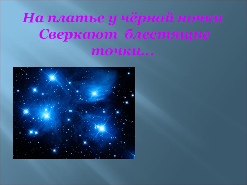 Слайд 1На платье у чёрной ночки Сверкают блестящие точки...