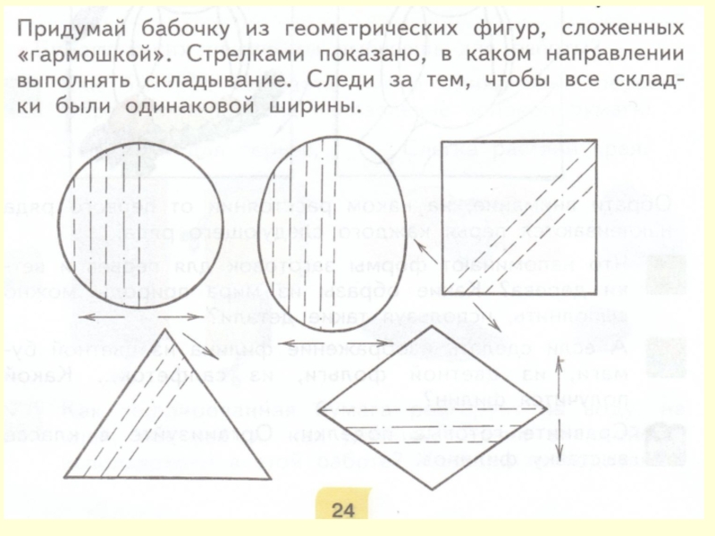 -Я вырезал по шаблону геометрические фигуры аккуратно - Я помогал товарищу - Я научился складывать «гармошкой» -
