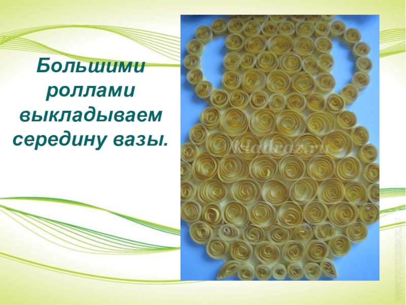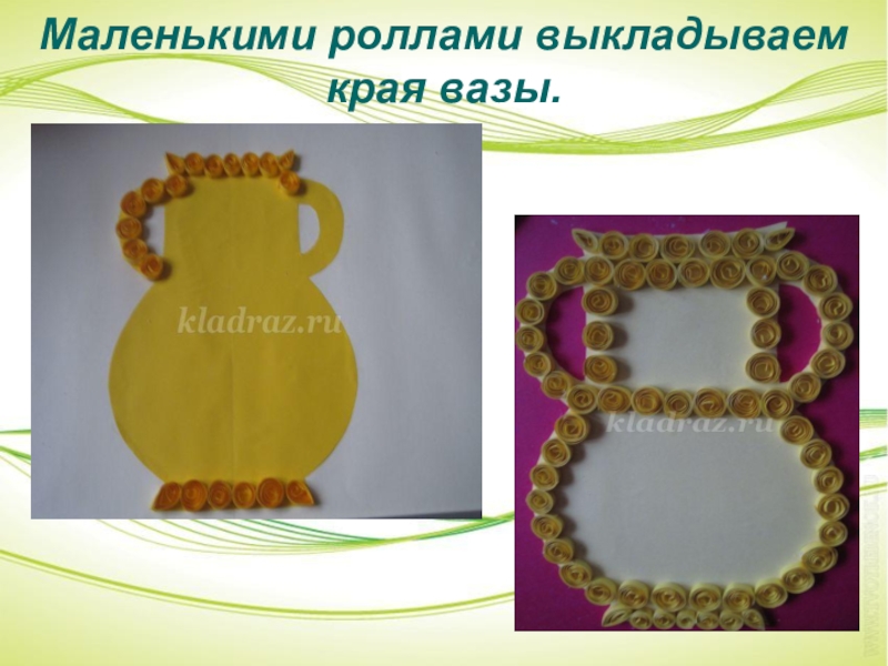 Слайд 5Маленькими роллами выкладываем края вазы.