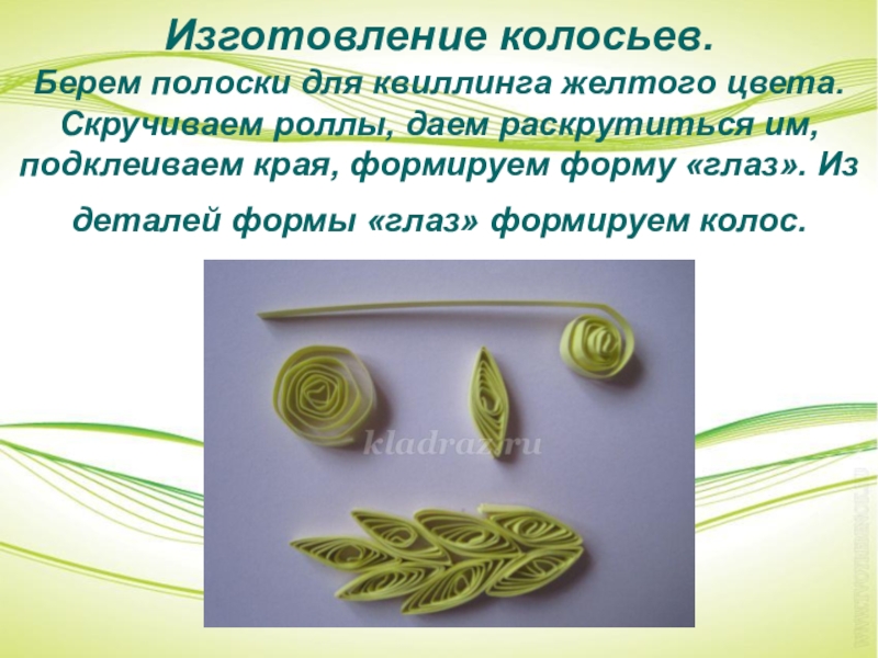 им, подклеиваем края, формируем форму «глаз». Из деталей формы «глаз» формируем колос.