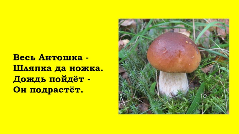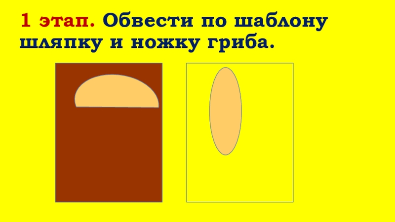 Слайд 41 этап. Обвести по шаблону шляпку и ножку гриба.