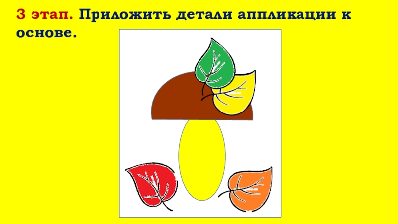 Слайд 63 этап. Приложить детали аппликации к основе.