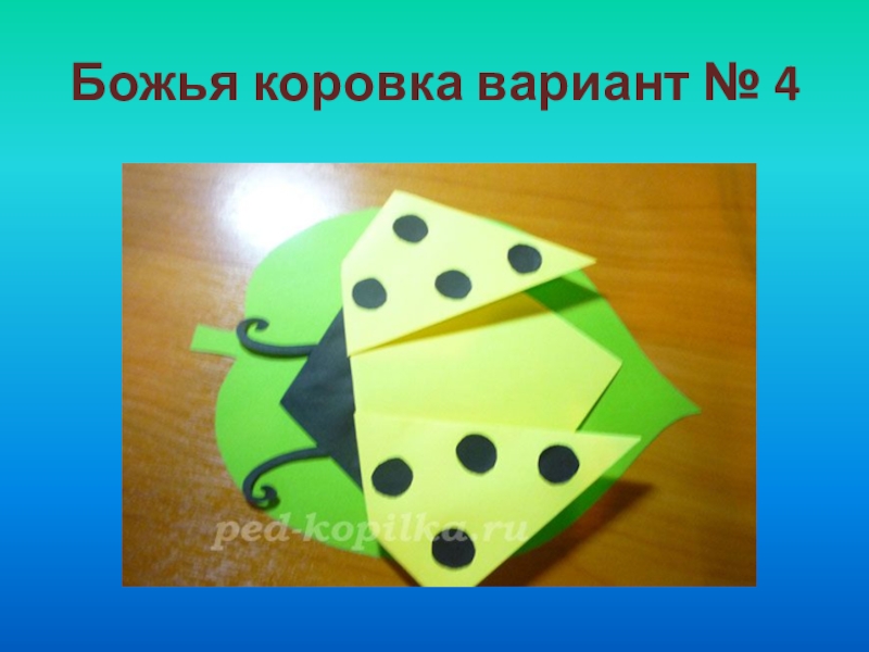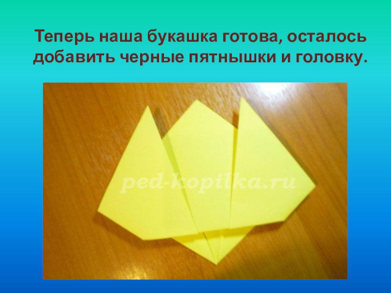 Слайд 26Теперь надо сделать головку божьей коровки. Переворачиваем получившуюся фигурку и верхний