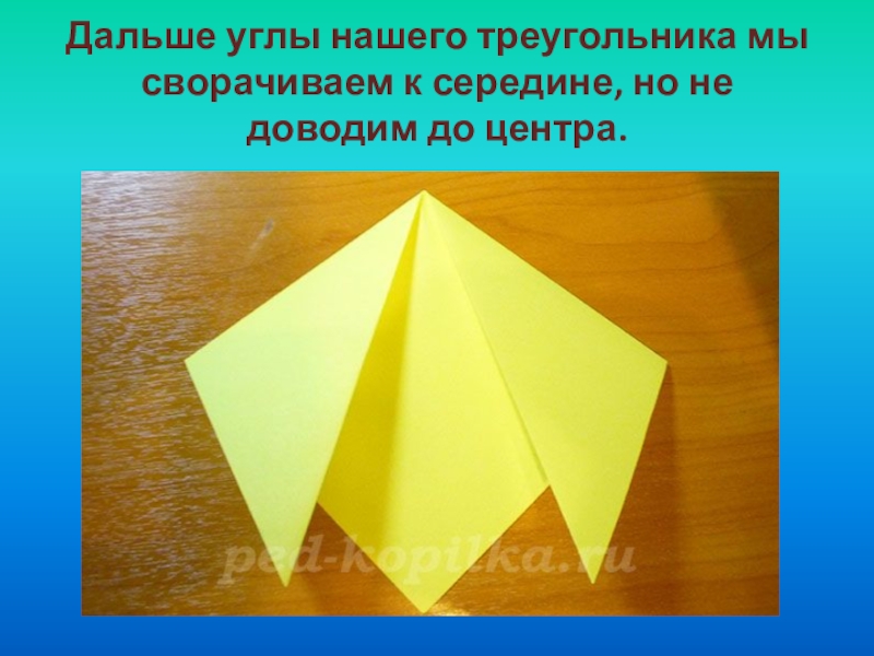 Слайд 25Дальше углы нашего треугольника мы сворачиваем к середине, но не доводим