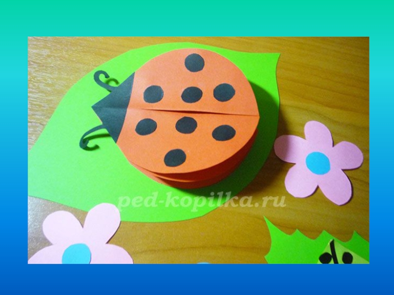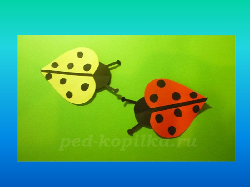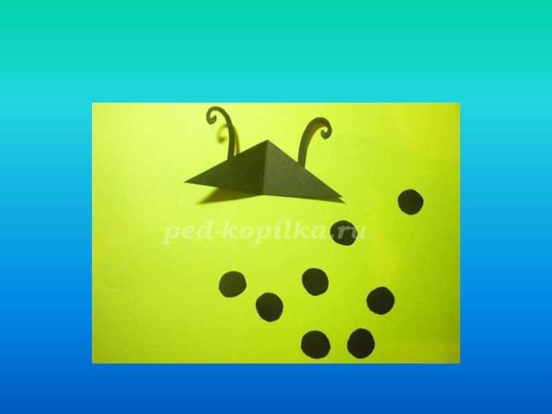Слайд 28Теперь наша букашка готова, осталось добавить черные пятнышки и головку.
