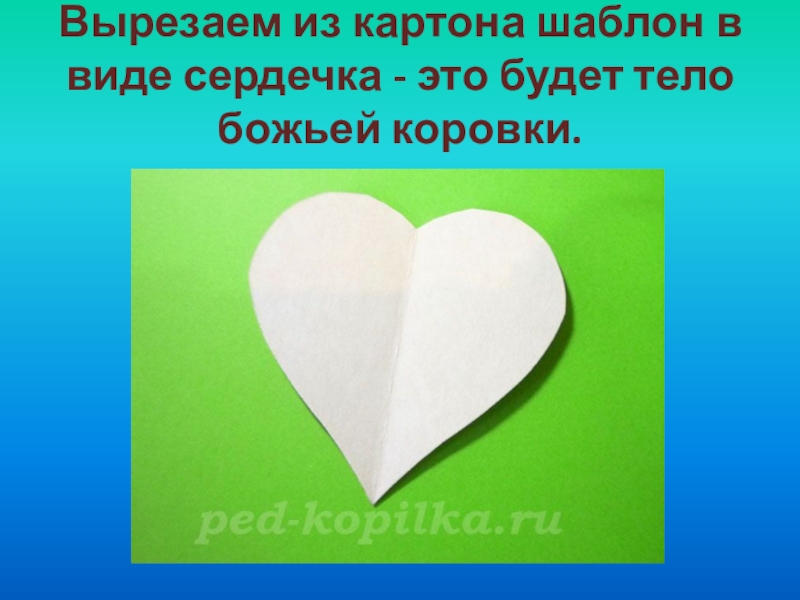 Вырезаем из картона шаблон в виде сердечка - это будет тело божьей коровки.